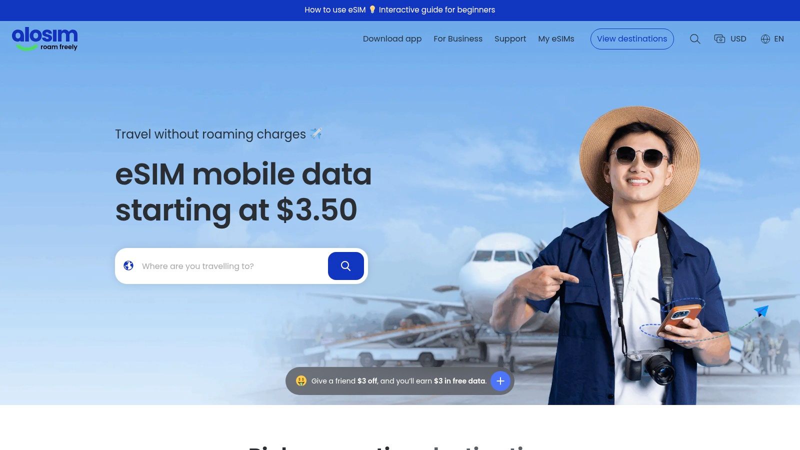 - Country-Specific Deals: It features dedicated landing pages for individual countries that often highlight the "best deals" or entry-level offers, making it easy to find a cost-effective plan for a single-country trip.