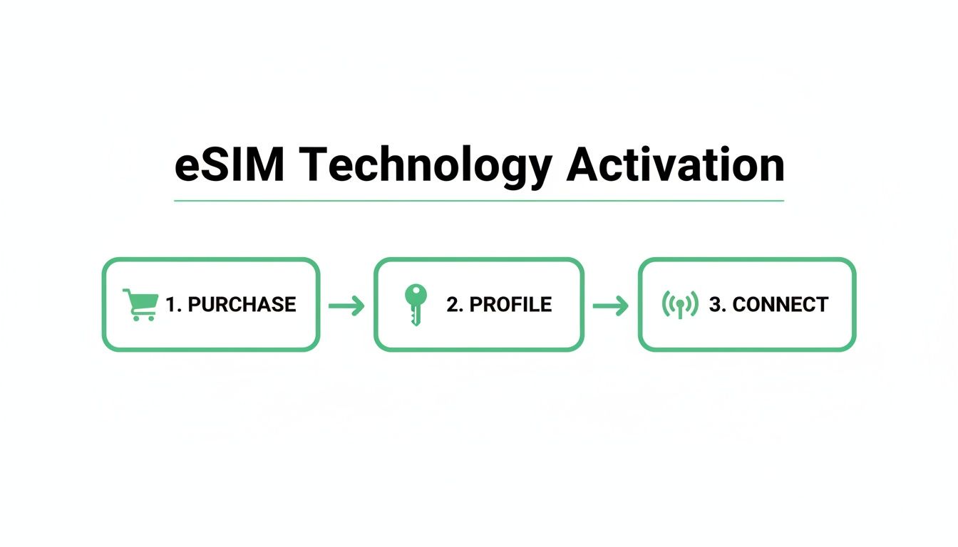 That file is called an eSIM profile. It’s packed with all the crucial info—like network credentials and access rules—that your phone needs to connect to a specific mobile carrier in another country. This is how your phone knows which local cell towers to talk to and how to identify itself on that network, all without a physical piece of plastic.