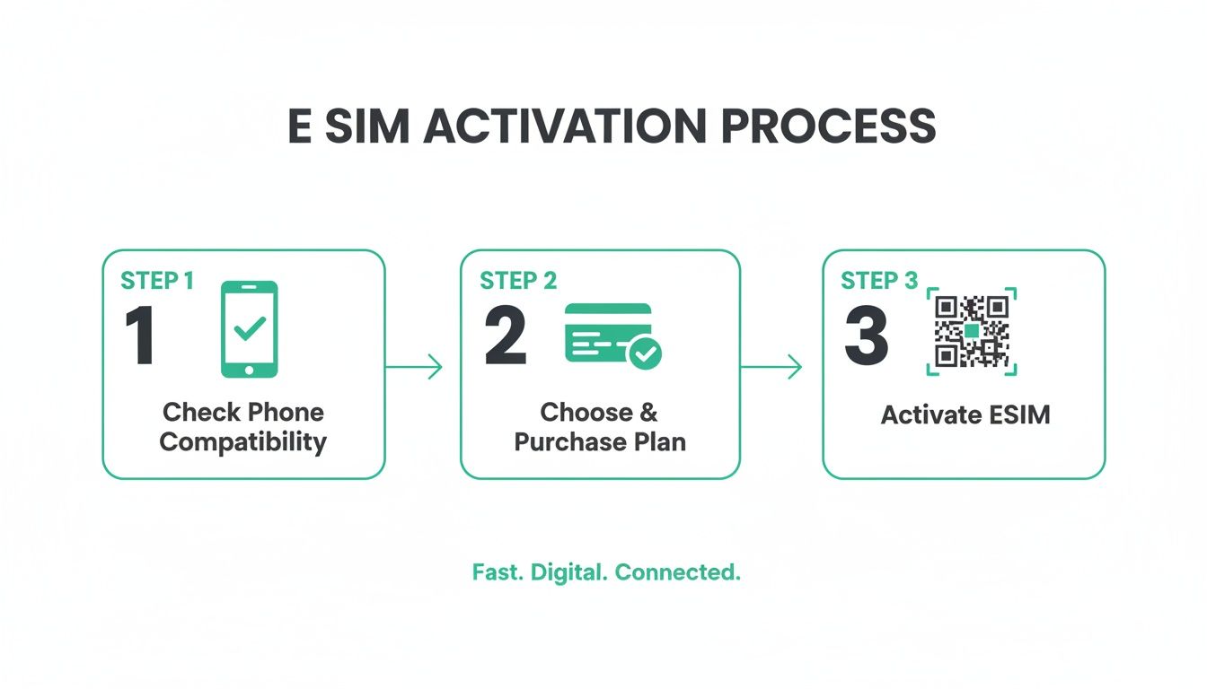 Getting an eSIM for your trip is way easier than it sounds. It really just boils down to three quick steps: first, make sure your phone is eSIM-compatible, then buy a data plan that fits your travel style, and finally, activate it with a QR code before you even pack your bags.