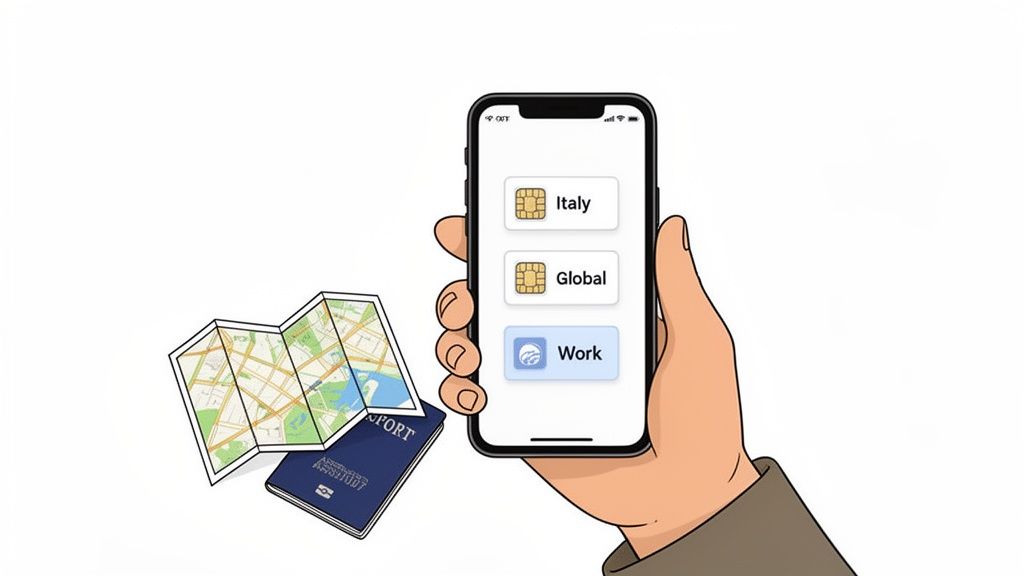 Pro tip: Always check if the provider’s app lets you top up your data easily. Knowing you can add more on the fly means you can start with a smaller, cheaper plan and only pay for more if you actually need it. To really dive deep, you can check out our detailed guide to the best eSIMs for international travel.