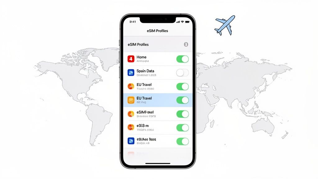 This is a complete game-changer. Picture this: you’re heading out on a multi-country European trip. Instead of hunting down a new physical SIM card in every city, you can buy and install a single regional eSIM that covers the whole continent before you even pack your bags. The second you land, just turn it on, and you’re connected.