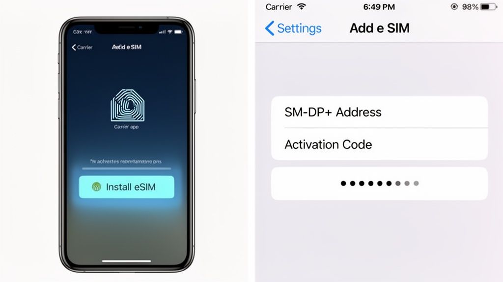 Scanning a QR code is definitely the most common way to get an eSIM running on your iPhone, but it’s not your only play. Sometimes you won't get a code, or maybe you'd just rather activate your plan directly through a carrier you already know and trust.
