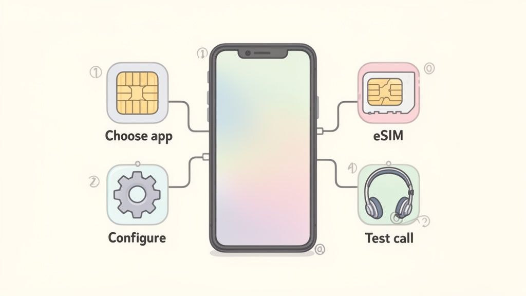 You might be surprised how easy it is to get international calling VoIP set up. Think of this as your practical playbook for making cheap calls from anywhere, long before your flight takes off. We can boil it down to just a few simple steps.